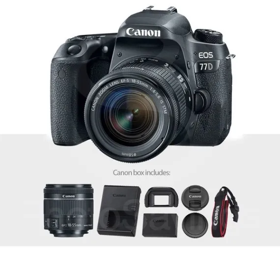 Canon EOS Rebel 77D DSLR Camera with EF-S 18-55mm f/4-5.6 Lens and 2X Professional 32GB, 58mm Telephoto & Wide-Angle Lens, Filters, Tripods, Straps, Flash, Remote, Xpix Lens Accessories