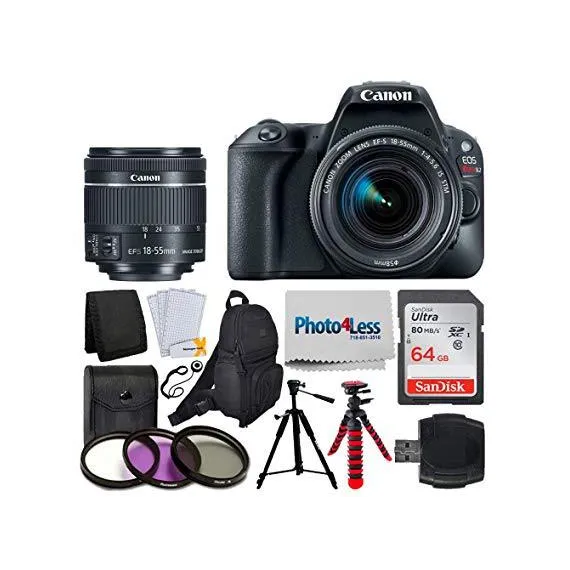Canon EOS Rebel SL2 Digital SLR Camera + EF-S 18-55mm f/4-5.6 IS STM Lens + Sandisk Ultra SDXC 64GB 80MB/S Memory Card + Accessory Backpack + Flexible Tripod + UV Filters + Card Reader – Valued Bundle