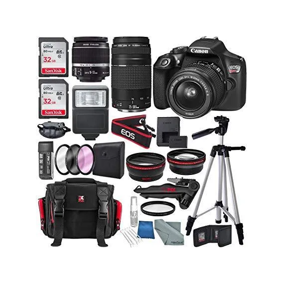 Canon EOS Rebel T6 DSLR Camera with 18-55mm, EF 75-300mm Lens, and Deluxe Bundle