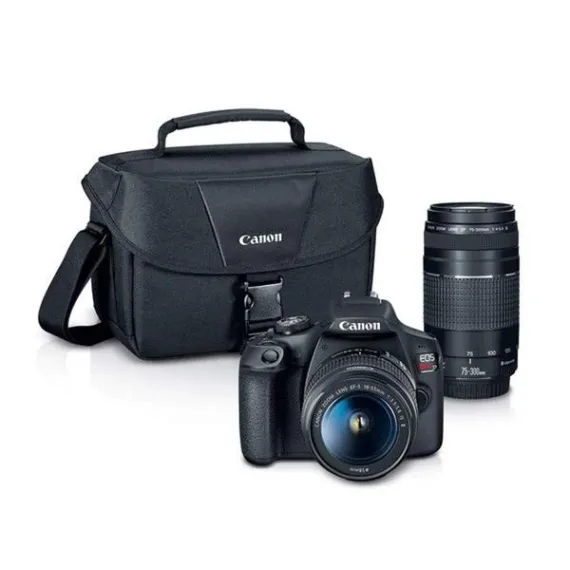 Canon EOS Rebel T7 Digital SLR Camera Body + EF-S 18-55mm f/3.5-5.6 IS II + EF 75-300mm f/4-5.6 III Lens + EOS Shoulder Bag + Transcend 64GB SD Memory Card + P4L Cleaning Cloth – Ultimate Canon Bundle