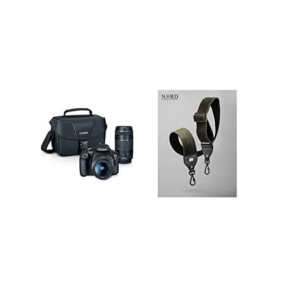 EOS REBEL T7 EF18-55mm + EF 75-300mm Double Zoom KIT and JL GEAR Nord Corduroy Universal Camera Strap with Quick Release System