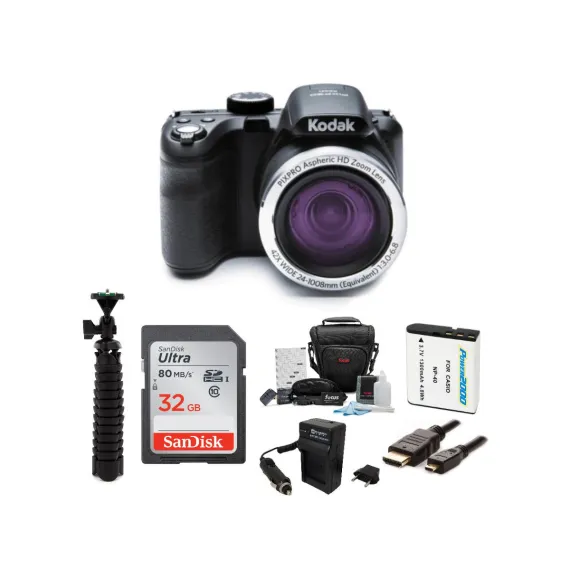 KODAK PIXPRO AZ425 Astro Zoom 20MP Digital Camera (Black) with 32GB Card Bundle