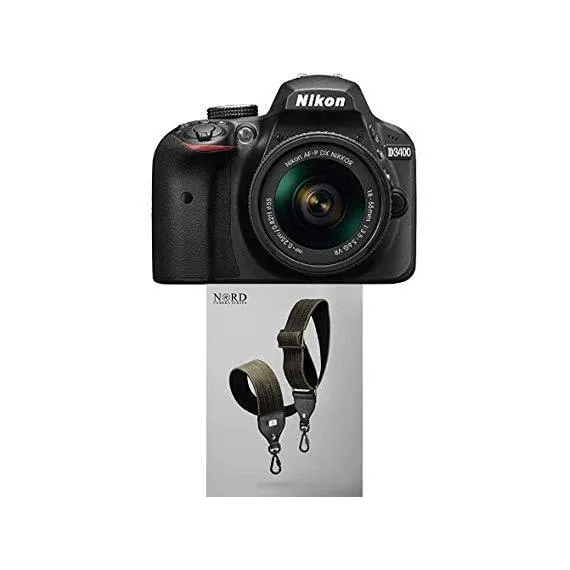 Nikon D3400 w/ AF-P DX NIKKOR 18-55mm f/3.5-5.6G VR (Black) with Universal Camera Strap with Quick Release System
