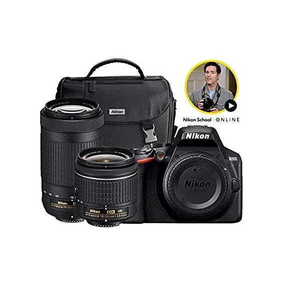 Nikon D3500 DSLR Camera with AF-P 18-55mm and 70-300mm Zoom Lenses + 64GB Card + Accessory Bundle