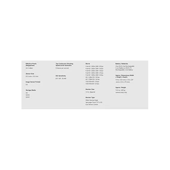 Make sure this fits by entering your model number. 24.2 MP DX-format CMOS sensor with no optical low-pass filter (OLPF) High-speed, Class 10 performance-leverages UHS-I technology for a read transfer speed up to 633x (95MB/s) Store, carry and protect your camera equipment