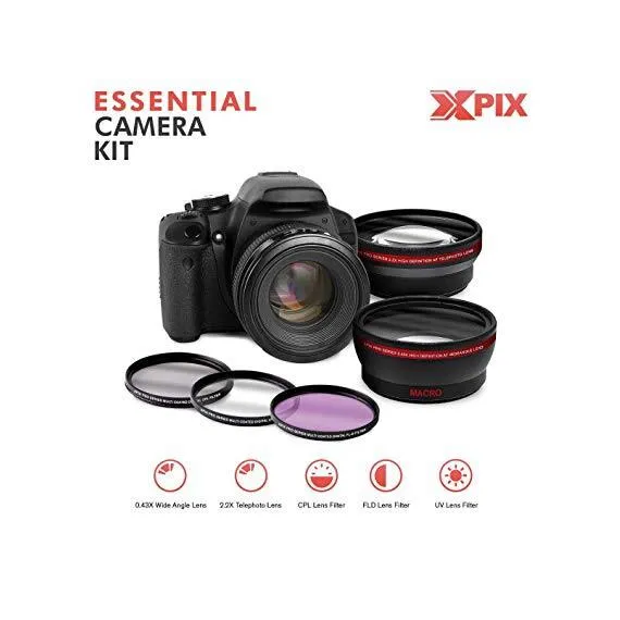 Nikon D5600 DSLR Camera with NIKKOR 18-55mm + 70-300mm Lenses W/2 x 32GB Memory Card + Digital Slave Flash + Filters, Telephoto & Wideangle Lens, Xpix Lens Accessories with Deluxe Bundle