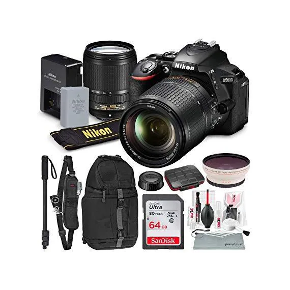 Nikon D5600 DSLR with 18-140mm f/3.5-5.6G ED VR Lens Kit and 64GB Pro Photo and Travel Bundle