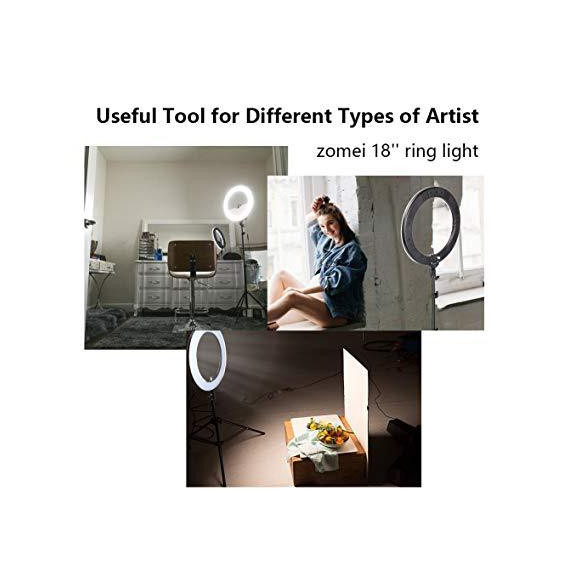 18'' Ring Light with 70''Stand,ZoMei Dimmable LED Ring Light with Tabletop Stand for Making up, YouTube Videos with ballhead, Phone Holder & Diffuser Cloth