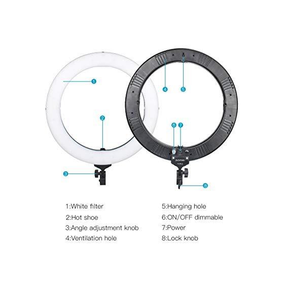 Make sure this fitsby entering your model number. 【Light kit includes】A.48cm Outer 100W 3200K-5800K LED Ring Light+B.Tabletop Stand +C.70’’/180cm Light Stand+ D.Orange Filter+E.Hot Shoe +F.Smart Phone Holder+G.Carring Bag+H.Diffuser 【Useful Tool for Diifferent Types of Artists】There are a lot of uses for a wide diameter continuous output ring light.It can be used primarily for photography, videography and makeup tutorials 【Dimmable Ring Light】With a wide dimming range from 1%-100%,the dimmable feature allows you to control the softness of the light 【Warm and Cool Lighting Knob】The White Filter (non-detachable )offers a great soft effect which is wonderful for portrait work and makeup application.The orange filter is great for creating slightly higher contrast for Black & White imaging 【Ring Light with 70''Stand & Tabletop Stand】A lightweight aluminum light stand gives it exceptional strength for heavy duty work. A tabletop stand makes light work easier