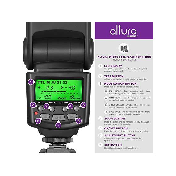 After pricing other flash kits for my Nikon D3300 I decided to purchase the Altura based upon its steady stream of positive reviews. At the price point I expected it to be of lesser build quality than some, but adequate to the task at hand. What I received met my expectations and exceeded them. I was able to quickly load the flash with (4) fresh AA batteries and connect it to the hot shoe on my camera. The included User Manual wasnt the easiest to figure out in terms of tweaking for perfect photos - at least not for a newbie, but the controls of On/Off are simple enough and it wasnt tough to quickly figure out the settings even without the manual. The ability to soften the flash with a plastic diffuser (included) and by user settings, was great. The flash worked perfectly with my camera and the included accessories were all as shown. I purchased this primarily for a fill light for outdoor portrait work. I think it will be great in this capacity offering up to 500 flashes on a full charge with inexpensive AA batteries. (Im sure rechargeable AAs would work well too.) The LCD screen is not bright green on the unit I received (as seen in the Amazon product photos). As a matter of fact its a little bit tough to see in a flat gray/green hue. Perhaps theres a brightness setting for the viewer Ive yet to discover, so I didnt take off a star for this issue. Overall, Im pleased with my purchase. I was able to install and use the flash within 10 minutes of unboxing it and I feel like it will provide me with the light I need at a fair price. NOTE: Photos included with this review are without any flash, with diffused flash and with the flash and no diffusion (the brightest with a setting of +2 on the flash).