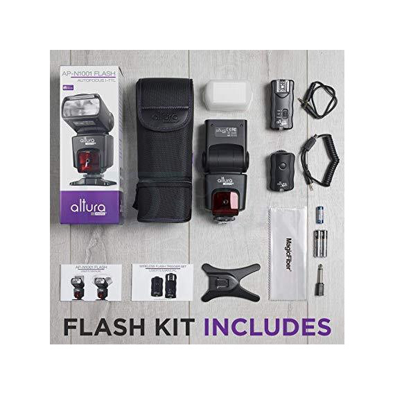 Make sure this fitsby entering your model number. Kit includes: 1 Altura Photo I-TTL Auto-Focus Dedicated Flash + Wireless Camera Flash Trigger and Camera Remote Control Function (1 Transmitter, 1 Receivers) + Cable-M Cord for Remote Control + Protective Pouch + Hard Flash Diffuser + MagicFiber Microfiber Cleaning Cloth Powerful dedicated I-TTL compatible flash for Nikon Digital DSLR cameras. Wireless flash trigger Set offers both off-camera flash and wireless camera trigger capabilities up to 100 ft. 1-Year Limited Warranty. Digital Goja is an Authorized Altura Photo Dealer. Backed with Digital Goja 90-Day 100% Satisfaction Guarantee. If you're not happy with your flash for any reason, please contact us and we will take the product back for a full refund.