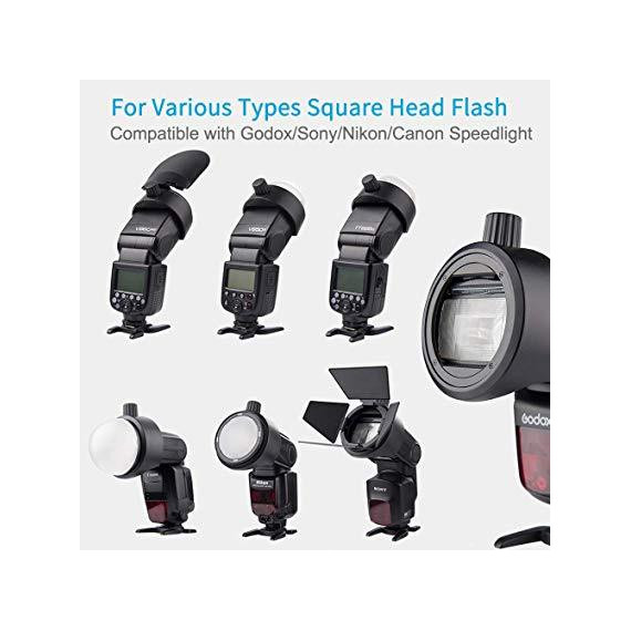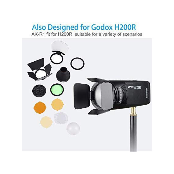 Make sure this fitsby entering your model number. Godox S-R1 with AK-R1 Compatible with V860II/V850II/TT685/TT600 Also fit for other brand Camera Flash Speedlite and create light effects as needed AK-R1 accessories kit include high quality barndoors / honeycomb grid reflector / conical snoot / diffuser ball for H200R. Special magnetic design helps you quickly change parts. Noted: Speedlite Flash is not included