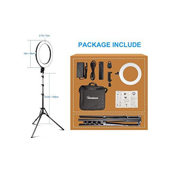 INKELTECH Ring Light - 18"/46cm Outer 60W Dimmable LED Ring Light Kit with Stand - Adjustable 3000K-6000K Color Temperature Lighting - Makeup, Photography, YouTube, Camera, Video - Control with Remote