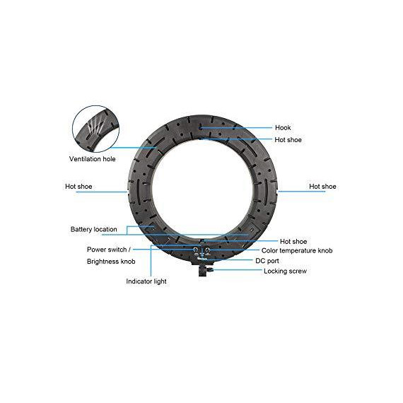 Make sure this fitsby entering your model number. INTELLIGENT & QUICK COLOR CHANGE - INKELTECH Ring Lights are controlled via the IR remote controller or the knob on the stand. Adjust the color temperature from 3000K to 6000K easily without using color filters. Achieve cold white light or warm light to hide blemishes and change skin tones quickly and easily. LED SMD design and 480pcs LED beads on our Ring Light offers more light for your camera photography, live streaming, Facebook Live, beauty makeup, macro photography, selfies and videos. SELFIE CONTROLLER & IR REMOTE - Take photos directly with our wireless selfie controller! Change the color temperature (3000K - 6000K) and brightness (0% - 100%) of the INKELTECH Ring Lights from up to 5 metres away (196”) with our IR Remote! You can select between 7 modes of lighting from the IR Remote including (a) Night Light Mode, (b) Warm Light Mode, (c) Cold Light Mode and others! With all these modes, you are bound to find the best light to suit your style. PHONE HOLDER & LIGHT STAND - Each INKELTECH Ring Light has a rotating (360 degrees) phone holder and a retractable tripod that effortlessly helps you capture different levels of brightness and angles of lighting! The phone holder is suitable for most smartphones including iPhone, Samsung and Huawei (2.5” - 3.5” / 65mm - 90mm width). The adjustable light stand range is 20” - 75” / 50cm - 190cm. One bag carries the total weight (4.5lbs) giving a lightweight and portable setup for outdoor shooting! USE INDOORS & OUTDOORS - Power your INKELTECH Ring Light outdoors with batteries (SONY batteries only; not included)! The indicator light on the back of the stand shows your batteries status: (1) The indicator is off when the batteries are fully charged, (2) The indicator will flash red when the batteries will run out soon and (3) The indicator will flash when the batteries are about to run out. Alternatively, power your Ring Light by plugging it in indoors! PACKAGE INCLUDES & WARRANTY - Inside of your package, you will receive: LED Ring Light Body (18” / 46cm) x1, Tripod (20” - 75” / 50cm - 190cm) x1, IR Remote Control x1, Selfie Controller x1, Phone Holder x1, Camera Holder x1, Adapter x1, Durable Travel Bag x1 and paper instructions for quick and easy setup. We also provide 12 months extended warranty. Please feel free to contact us at ikeltech@163.com if you have any questions! We are happy to help and would appreciate that very much.