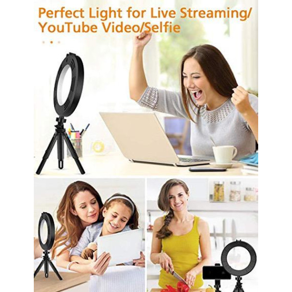 Ring Light 2019 Newest, 6" Dimmable RGB O Ring Light with Tripod Stand and Cell Phone Holder for Makeup, YouTube Video, Self-Portrait, Mini Desktop Led Ring Light Selfie Light Ring for Smartphone