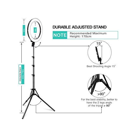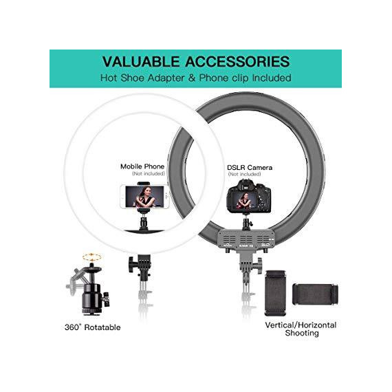 Make sure this fitsby entering your model number. FOSITAN RL-18A is a large ring fill light with an outer diameter of 18 inches (48.5cm) and an inner diameter of 14inch (36.5cm). It can fill the part/semi-body/body of the character, it can make you look gorgeous in all your photo with the aperture projected in the pupil, perfectly suitable for work lighting, product photo shoot, make-up blogger, tattoo manicure, hair styling, costume beauty livestream, self-timer video, etc. Equipped with 512 high-power LED, 2 times brighter than the ordinary ring light, and the index is up to 90+, which restores the true color to the greatest extent. A mobile phone clip is suitable for the phone's screen width of 82mm or less such as iPhone 8 plus/8/X, Samsung Galaxy S9/S8, and a metal hot shoe adapter is suited for the camera body its self has the hot shoe adapter interface like Canon Rebel T6i, Nikon D5000, etc. Dimming knob design: Brightness is 10-100% adjustable makes it easier to control the brightness of light when shooting. The Bi-color LED design (256pcs yellow, 256pcs white ) makes it easy to switch between yellow and white lights from 3200K to 5900K without disassembling the color filters, which is more convenient to control the lighting atmosphere; Made of high-quality aluminum alloy, the light stand is 31"-80" adjustable, ring head is 0-180° adjustable, very easy to adjust the distance and angle according to the shooting demands. Besides, it's equipped with a 1/4 matching thread at the top of the stand, which can be used separately with your other suitable equipment. PS: Recommended to turn the ring head toward the foot of the tripod to increase the stability of the lamp; What You Get: 1x Ring Light, 1x Light Stand, 1x Power adapter with power cord, 1x Bag for ring head, 1x Phone holder, 1x Hot shoe adapter, 1x User Manual. It is covered by FOSITAN 12-month worry-free warranty. It has been tested without any problem before sending out. If you receive the product with any issues, please feel free to contact us via Amazon message. We will do our best to provide the satisfiest solution within 24 hours during working days.