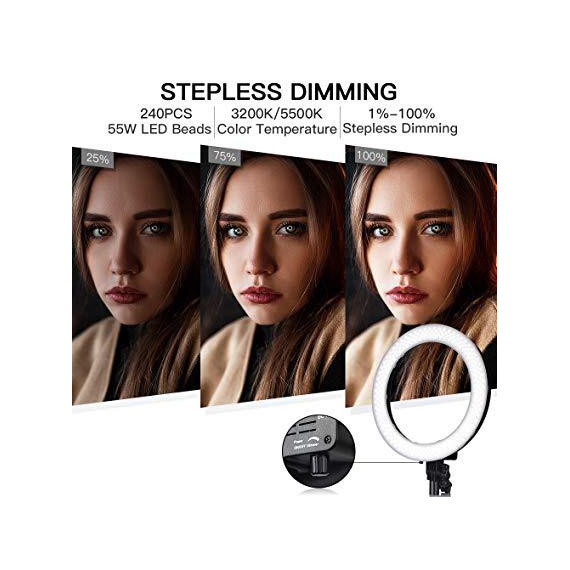 SAMTIAN 18-inch LED Ring Light Kit 55W 3200K/5500K Dimmable SMD YouTube Light Ring with 2M Light Stand, Cradle Head, Phone Holder for Video Shooting, YouTube Video, Portraiture, Makeup, Vlog