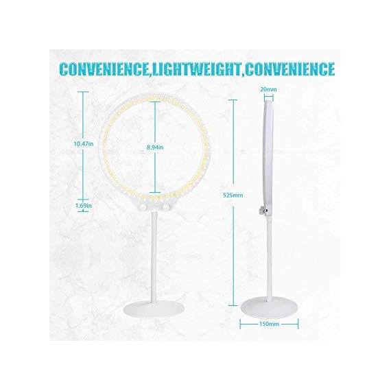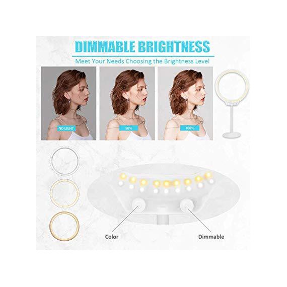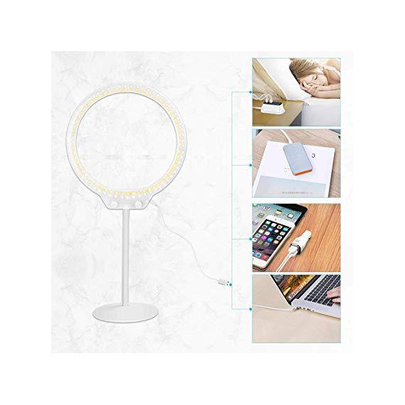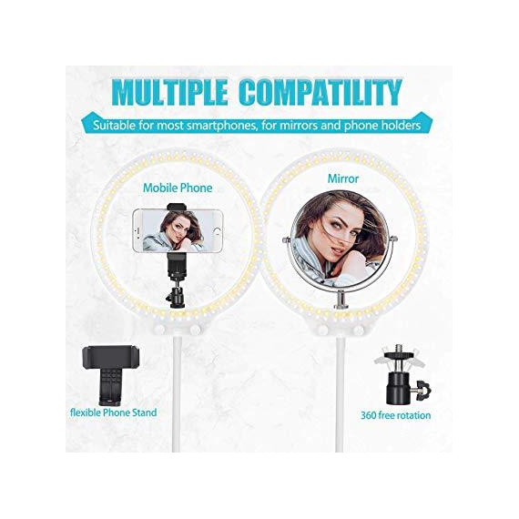 Make sure this fitsby entering your model number. 【EYE CARE】Selfie ring light with 7.5W power output, 128 pcs led bulbs place evenly inside the light without any dark corner, perfect for video and photo shoot. No flicker, dazzling and glare, protect your eyes 【KIT INCLUDES】(1)Desktop LED Ring Light, (1)Ring Light Base, (1)Soft Tube, (1)Smartphone Holder, (1)Hot Shoe (1)Small Ball Head, (1)USB cord, (1)Double mirror, (1)Carrying Box We can offer a one-year warranty 【MAKE LIFE EASIER】Desktop ring light No filter--only one color temperature knob of the ring light can give you warm or cold light easily; No diffuser--built with a diffuser itself to soften the lighting for your shooting demands 【PERFECT ACCESSORIES】Desktop Ring Light come with a double mirror, you can take selfie with your own phone or make up for live stream. Ball head adapter fits onto a standard hot shoe and locks into position 【RING LIGHT USB POWERED】Selfie desktop ring light is available to many kinds of devices, no need to charge you can use at any time, work with multiple devices: PC, computer, laptop etc