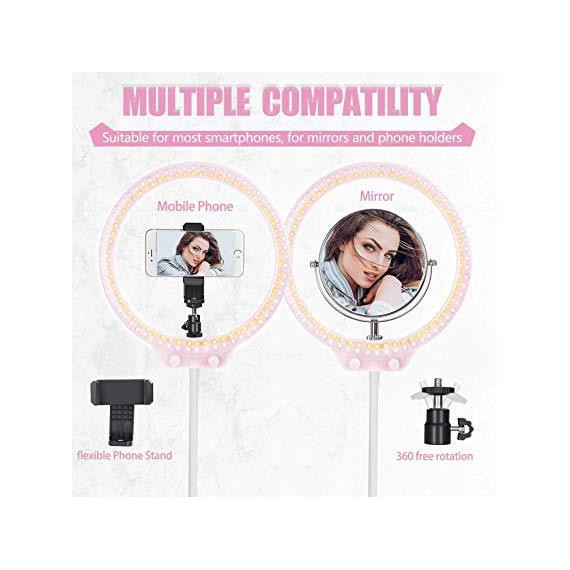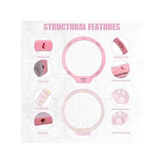 Selfie Desktop Ring Light,Beauty Light ZOMEI 10”7.5W 3200-5500K Dimmable Ring Light with Mirror for YouTube,Live Streaming,Portrait Photography and Make up(Include Mirror)