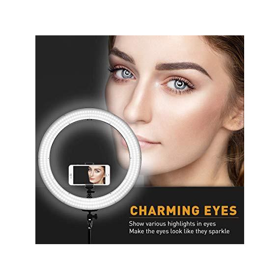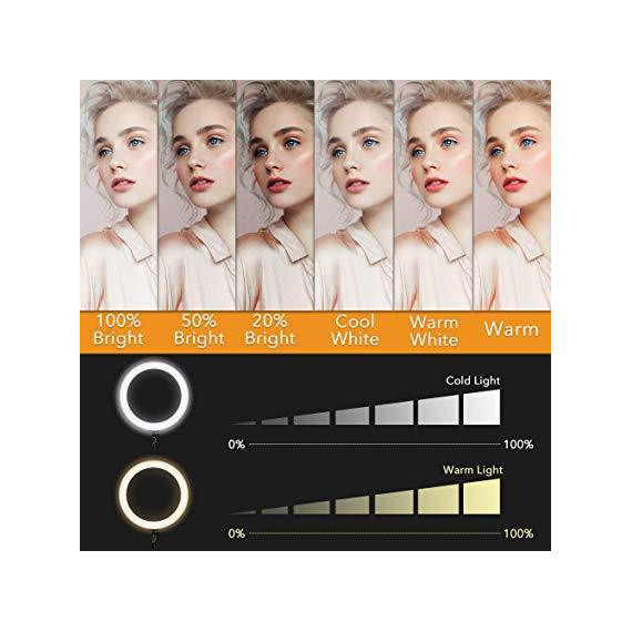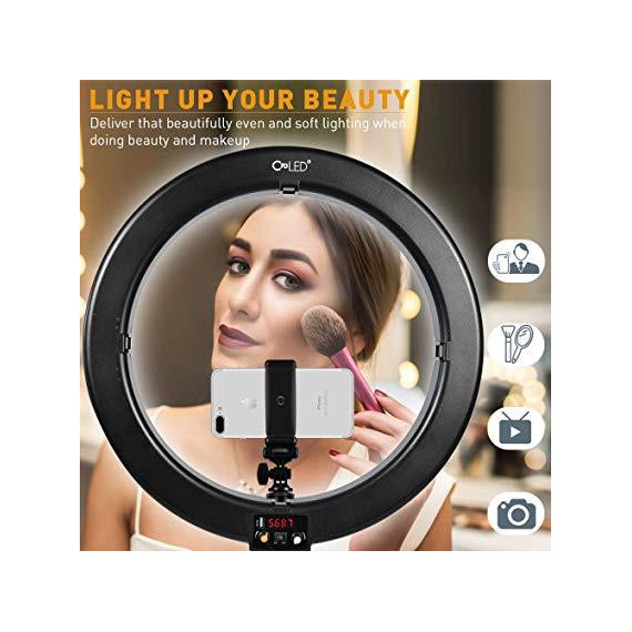 Make sure this fitsby entering your model number. ☀【Soft, dimmable bicolor for make-up, live stream, photography】still choosing old and blurry color filter ring light?? Hard to install, easy to break, difficult to adjust?! Upgraded 18" Ring light w/ LCD display offers a professional lighting from 3200K to 5500K and 0% to 100%, easy and step less control. Soft and accurate brightness/color temperature is perfect for daily make-up or professional use. Easily create stunning photos videos to share on your Instagram, Facebook Live and YouTube! ☀【Accurate adjustment w/ LCD display】lighting effect is a key factor in photography or video, every shot is different even a small adjustment of brightness. The equipped digital LCD display of CroLED ring light can reflect every adjustment of brightness or color temperature. Exact display helps to quickly rebuild the required light effects. No need of guessing current color temperature or brightness anymore! No worry about how to rebuild the required lighting! Just turn on the light to work! ☀【Cri>90, easier distinguish lipstick color】cheap and color filter ring light No only harms your eyes, but also makes it hard to distinguish different colors (like lipstick color). CroLED ring light has CRI 90+ (higher than old color filter ring light), which makes it easily to distinguish different colors in the photo or video, helps to create more stereoscopic, attractive and realistic portrait. Different distances of the light show various highlights in the eyes, making people more attractive ☀【Unique fast-charge USB power output for long lasting use the unique fast-charge USB power output lasts your live stream several hours longer, no more power bank needed! It can charge for iPhone Samsung Huawei iPad or else devices. Benefit from the built-in fast charge power output, you can easily adjust phone angle and without worry of battery draining out. Ring light comes with Phone Holder & Hot-Shoe for easily attaching smartphone & Cameras. ☀【Multi-scenario】includes a small hot shoe camera attachment with a 1/4 inch thread and phone holder, compatible with Most 55-75mm wide smartphone and DSLR cameras. Perfect for daily use or professional makeup artist, YouTube content creators, tattoo artist, tiktok, video bloggers, Lasso/Caffeine/face cast/Vero video shooting, hair stylists/salons/colorists, selfie lovers, Facebook Live, Instagram, snap chat. Backed with 24-month and 7/24 customer series.