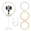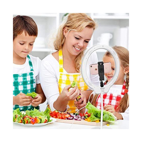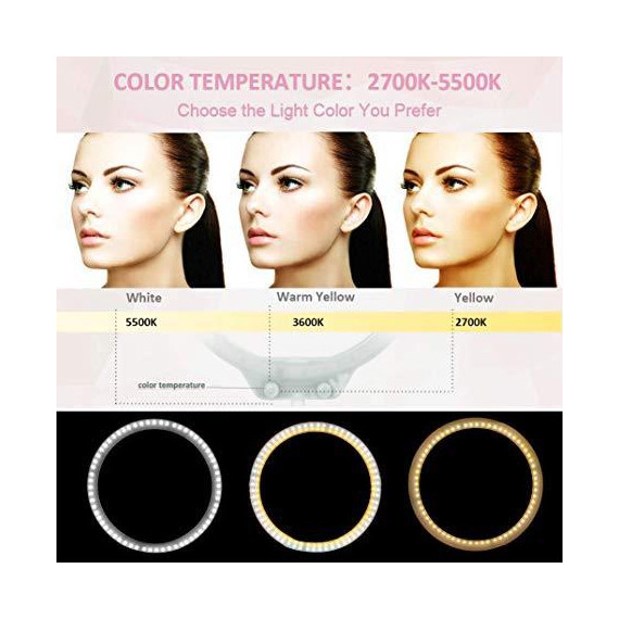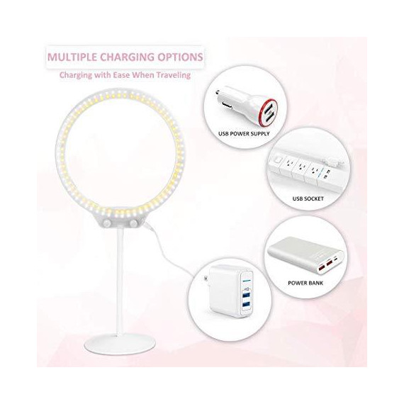 Make sure this fitsby entering your model number. 【DIMMABLE】10” tabletop ring light with dimmable & color temperature button. Dimmable button for brightness options, color temperature for ‘warm to white’ light options 【USB PORT】USB power supply port can be connected to the power supply throughthree ports,such as cell phone charger, portable power bank and computer USB port 【MINI SIZE】10” outer diameter and you can separate the kit into a round light, soft tube, base, phone holder, silver connector and hot shone for easy carrying 【APPLICATION】Perfect fill light for makeup, selfie, YouTube videos, portrait photography and live stream 【GLAMOROUS EYES】128 pcs led bulbs place evenly inside the light without any dark corner, will bring high light in your eyes, make your eyes attractive. No flicker, dazzling and glare