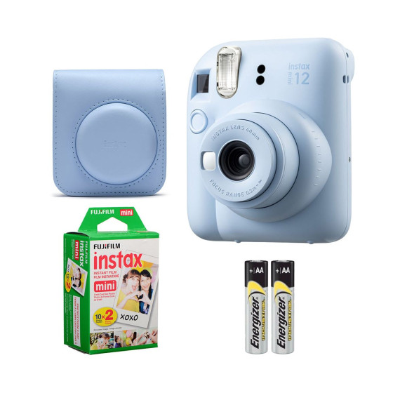 Fujifilm Instax Mini 12 Camera (Pastel Blue) with Case & 20 Mini Film