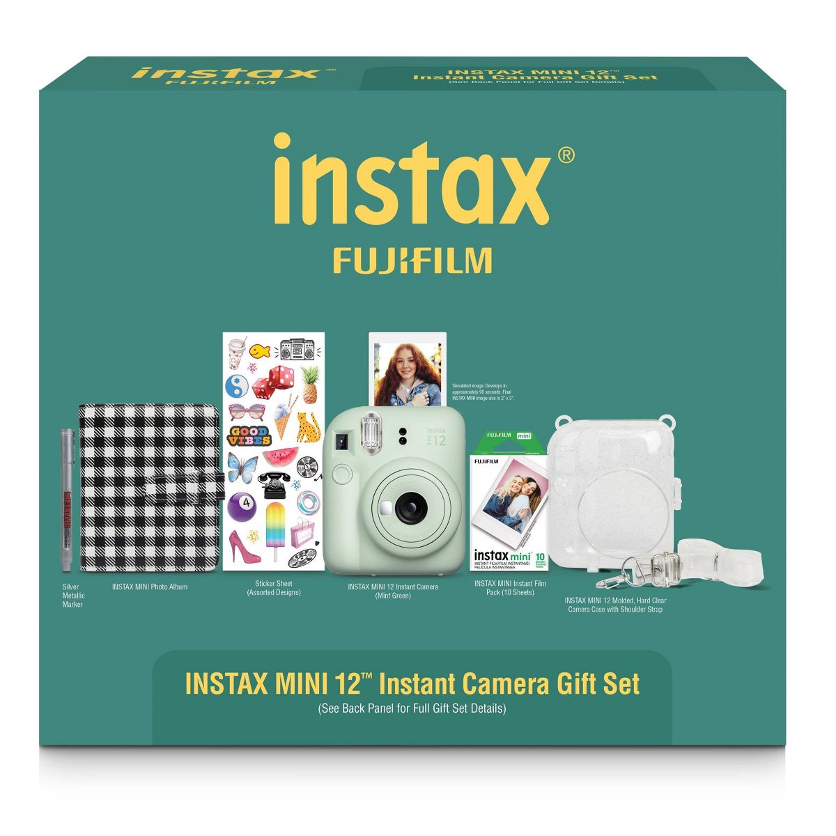 Capture those fun moments with the super cute, Target exclusive, FUJIFILM INSTAX MINI 12 Instant Camera Gift Set! Snap instant photos with the INSTAX MINI 12 Mint Green Instant Camera (INSTAX MINI Instant Film Pack (10 Sheets) included) and take it on-the-go with you in the INSTAX MINI 12 molded, hard clear camera case with silver glitter accents. Write messages or memorable dates on the INSTAX MINI white border film frame with the silver metallic marker and add fun stickers to your photos using the Sticker Sheet. You can even store the photos you’ve taken in the INSTAX MINI Photo Album that’s included. This all-in-one INSTAX MINI 12 Instant Camera Gift Set is a perfect gift!