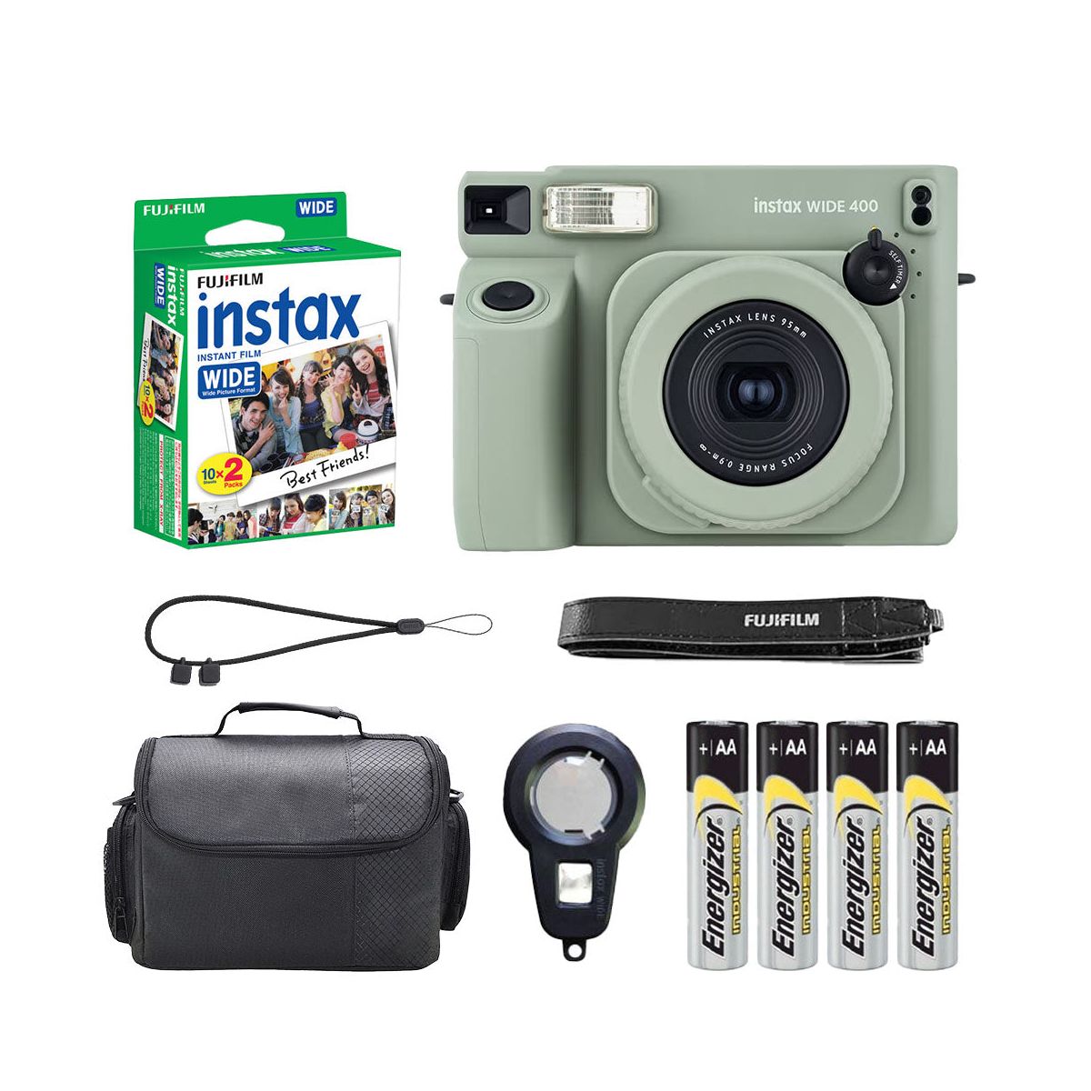 Fujifilm Instax Wide 400 Instant Film Camera Sage Green Bundle – Includes 20-Sheets Instax Wide Film and Protective Carrying Case