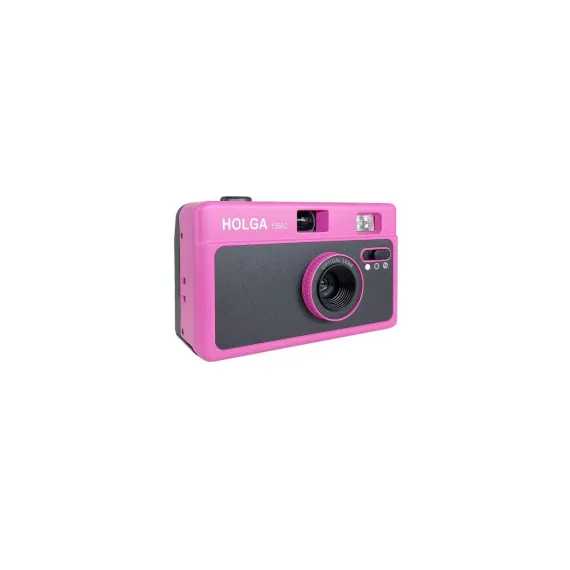 The Holga 135AC Camera offers the convenience of a point-and-shoot design. Its fully automatic film advance and reqind streamline the shooting process, yet the plastic lens and fixed settings evoke the disctingt aesthetic of classic Holga photography. The fixed shutter speed and wide-angle lens make it well-suited for capturing a variety of scenes, especially in daylight while the built-in flash provides versatility for low-light situations.