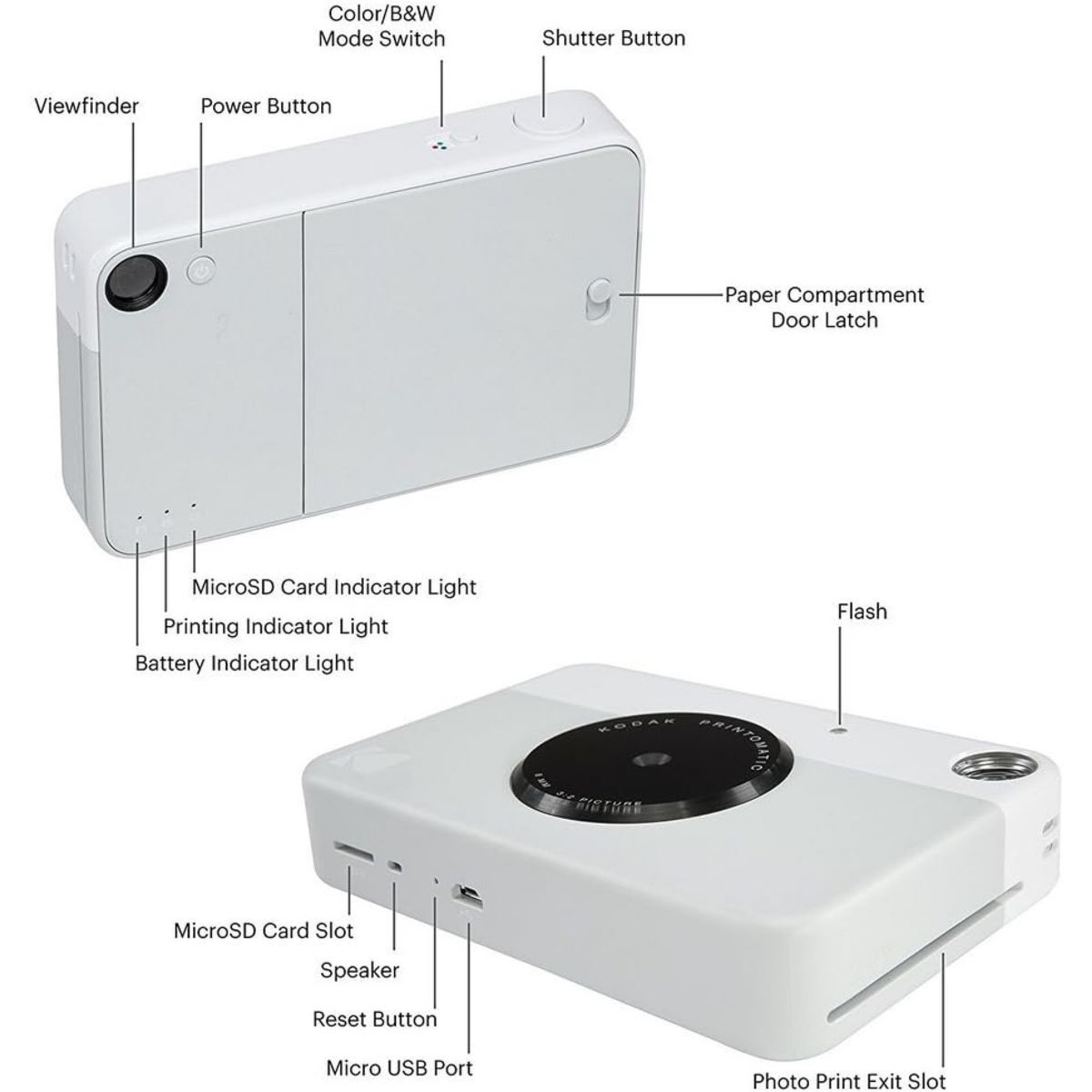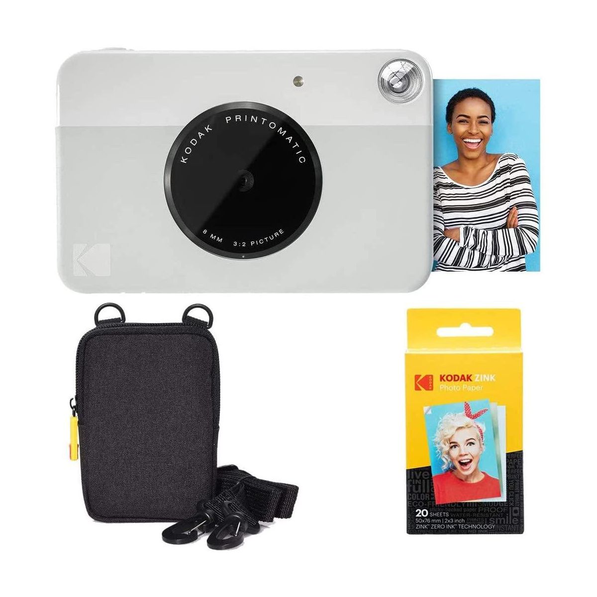 The Kodak Printomatic Mini Instant Camera prints smudge-proof, water- and tear-resistant photos up to 5 MP automatically. With this Kodak instant camera, you just point, shoot, and print. Perfect for taking on the go, whenever you want to share prints, the Kodak Printomatic Wireless Mini Instant Camera is the easiest way to share photos with friends. This mini digital camera's compact design slips neatly into your shirt pocket. The portable camera speed even allows you to continue shooting while your photo is printing. The "Insta Camera" Zero Ink technology means you don't need to worry about messy print cartridges, film, or toner. With the included carrying case you can take this Kodak instant camera everywhere with you. With this instant picture camera your prints are adhesive-backed, so you can get creative and use the photos to decorate, just as you would any sticker.