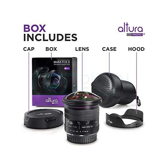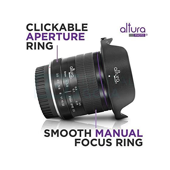 Make sure this fitsby entering your model number. NEW 2019 MODEL – The new version of the Altura Photo 8MM lens is updated for 2019 with improved optics and build quality for unparalleled image quality. MANUAL FOCUS FULL 180° VIEWS - Included removable hood allows for stunning 180° views. COMPATIBLE WITH: All Canon APS-C cameras; including the Rebel T7, T7i, T6s, T6i, T6, T5i, T4i, T3i, SL1, SL2, SL3, EOS 60D, 77D, 70D, 80D; EOS 7D, 7D MK II. Is also compatible with FULL FRAME cameras but please keep in mind it will produce a more circular "360" image with black vignette borders. CUSTOM LENS CASE – A custom designed protective lens case is included for safe storage. 1 YEAR WARRANTY – Includes 1 year of limited warranty by Altura Photo.