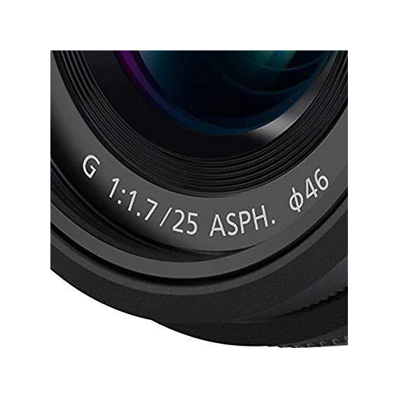 Make sure this fitsby entering your model number. NANO SURFACE COATING: Professional, high-quality LUMIX G camera lens optics with Panasonic’s Nano Surface Coating to reduce unwanted ghosting and flaring for crystal-clear pictures (8 Elements in 7 Groups, [1 UHR lens and 2 aspherical lenses]) HIGH-PRECISION, HIGH-SPEED AF: High-speed, high-precision Contrast AF system when mounted on a LUMIX G series camera; Stepping motor makes focusing action smooth and near silent for use in video and photo recording STABLE OPTICAL PERFORMANCE: Compact lens maintains stable optical performance even at wide F-stops and provides a beautiful bokeh background defocus effect for exceptionally creative imaging FAST STANDARD LENS: Versatile, fast standard 25mm focal length lens (35mm camera equivalent: 50mm) is perfect for low-light, high-quality photography with a bright, maximum F1.7 aperture (minimum aperture F22) SEVEN APERTURE BLADE CONSTRUCTION: The lens’ seven aperture blades produce an attractive smoothness in out-of-focus areas, even when shooting at large aperture.Closest Focusing Distance:0.25m / 0.82ft