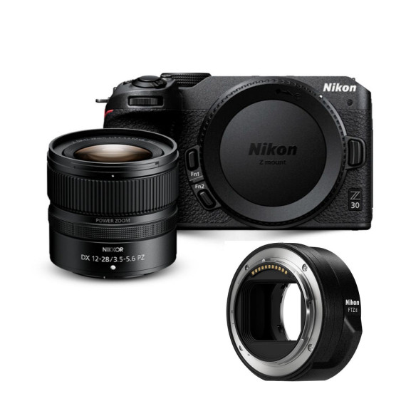 Bundle Includes: Nikon Z 30 Mirrorless Body Camera and NIKKOR Z DX 12 to 28mm F3.5 to 5.6 PZ VR Lens and Nikon FTZ II Mount Adapter. Perfect for capturing every moment..