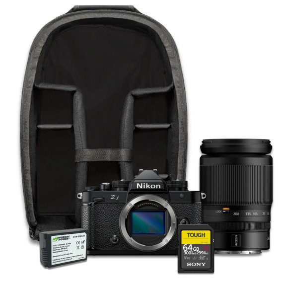 Bundle Includes: Nikon Zf Mirrorless Camera (Black), Nikon NIKKOR Z 24-200mm f/4-6.3 VR Lens, Koah Sling Camera Bag, SanDisk 128GB Memory Card, and Camera Accessory. Perfect for capturing every moment..