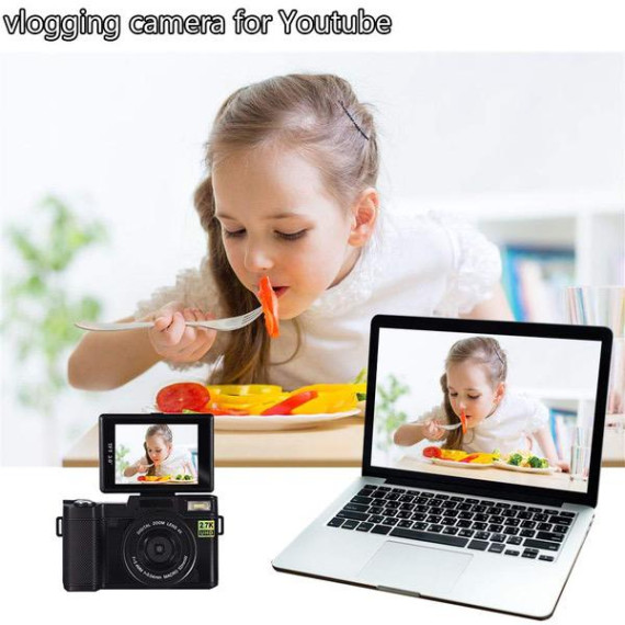 Digital Camera,Vlogging Camera for Youtube 2.7K 24.0MP Ultra HD WiFi Camera 3.0 Inch 180 Degree Rotation Flip Screen Retractable Flashlight