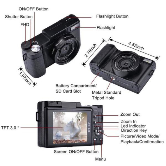 - ❤Built-in Wi-fi: Feel free to control the digital camera with your phone or tablet to take pictures or record videos as the camera has built-in Wi-fi. In the meanwhile, you may also upload the pictures and videos to your phone or tablet. Don't hesitate to share your videos with your friends through social media.