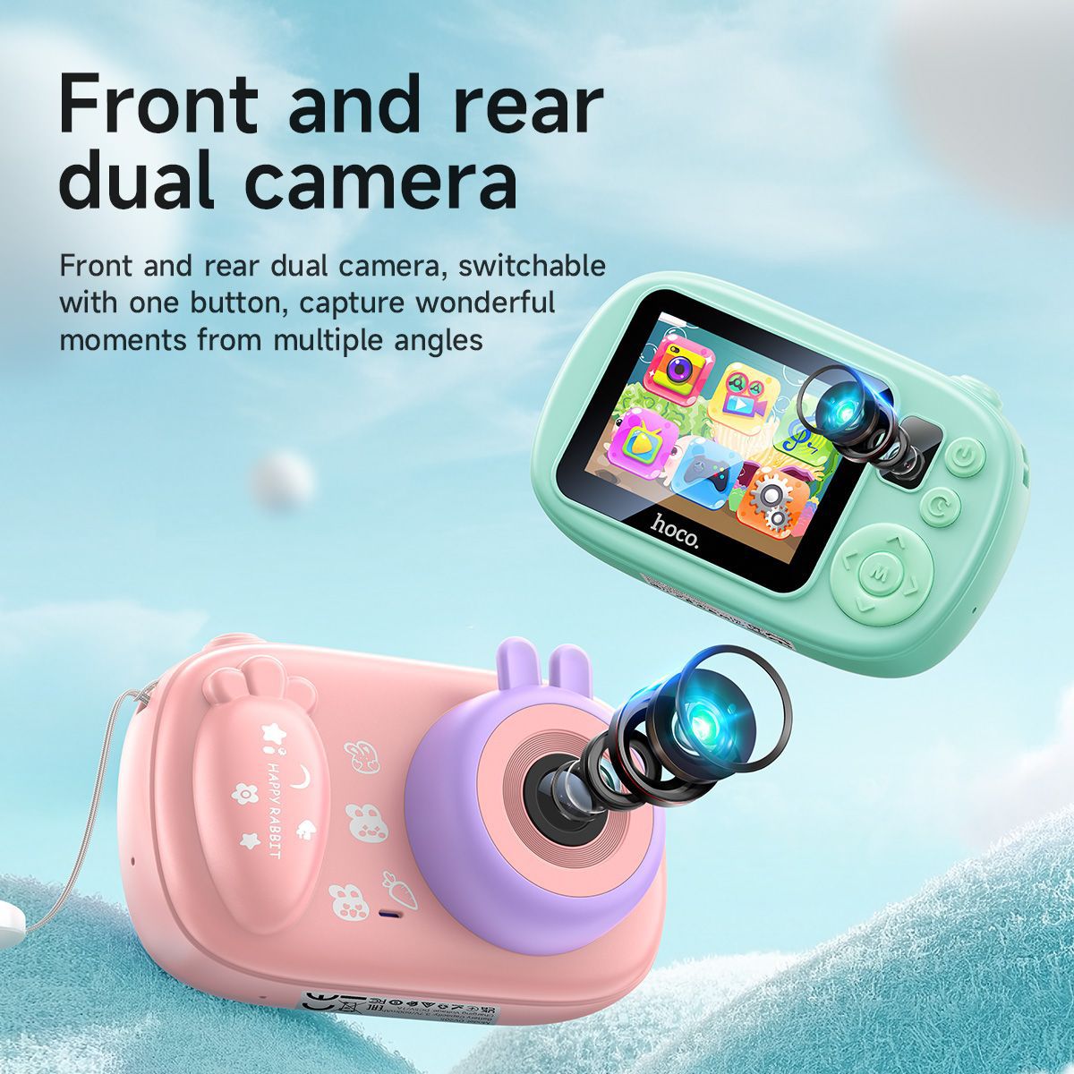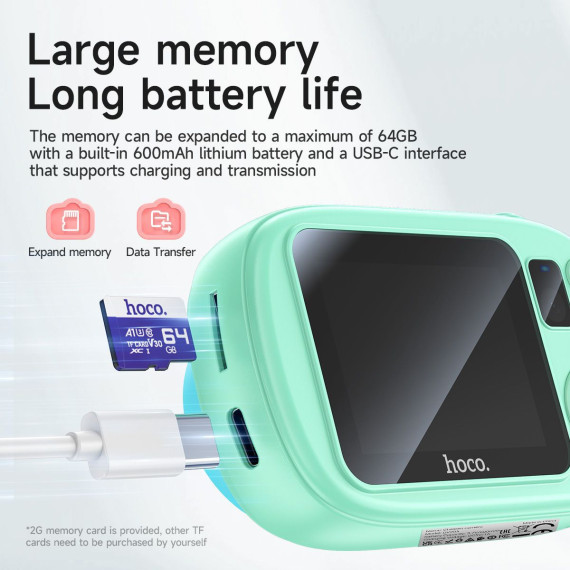 Designed for curious minds, the hoco Kids Dual-Cam Digital Camera makes it easy and fun for children to explore their world through photography. Crafted from safe, durable materials, it features a 2.0-inch HD screen and captures both HD video and still photos. Its lightweight, portable design encourages on-the-go creativity, while included accessories add a personal touch to every adventure.