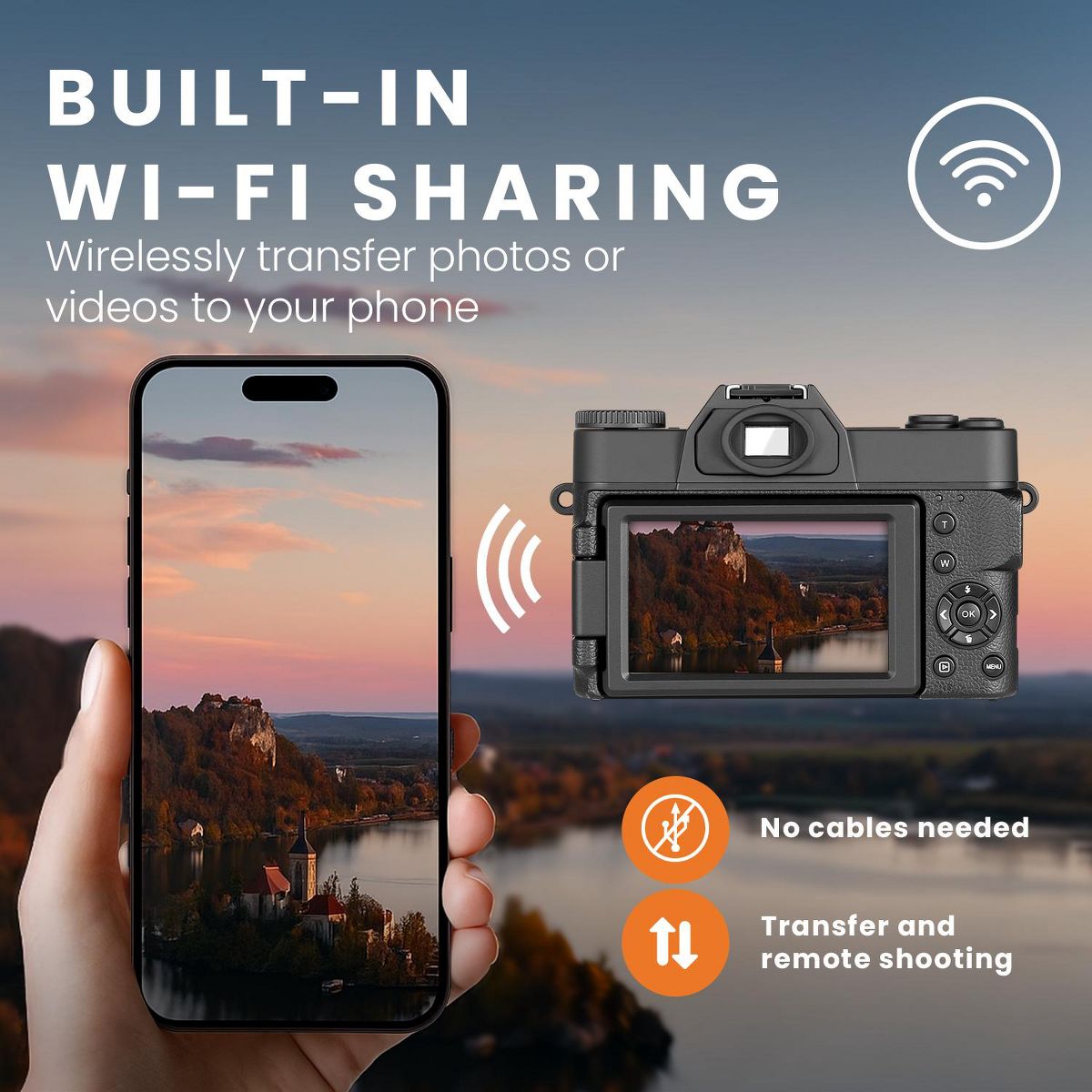 HOM 4K Digital Camera with Interchangeable Lens - 16x Digital Zoom, 3.0" Flip Screen, Autofocus & Wi-Fi Connectivity - 32 Micro SD Card Included