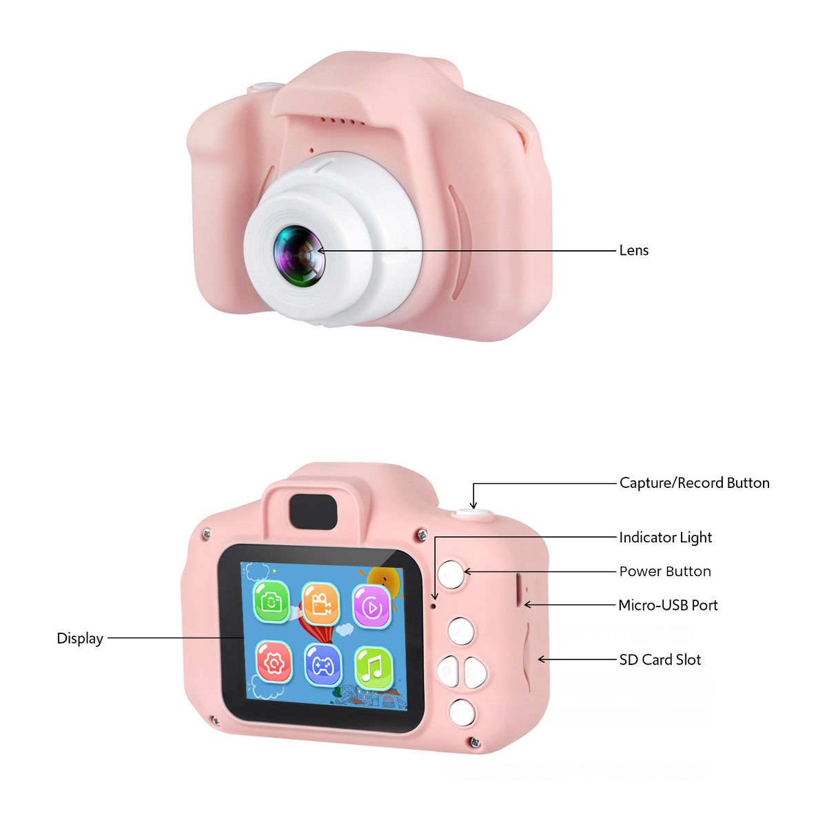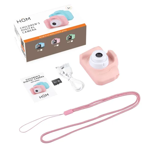 Introducing the HOM Kids Camera – where high-resolution fun meets creative exploration for your little ones! This children's digital camera ensures stunning detail with its 1080p resolution. Navigate effortlessly through memories on the 2-inch playback display, enhancing the viewing experience for your budding photographers.