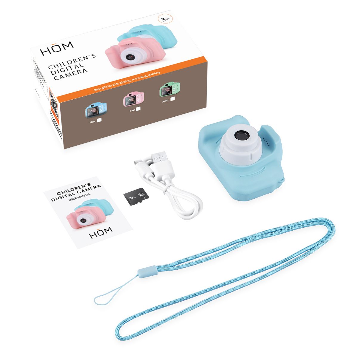 The HOM Kids Camera's vibrant and durable design, complete with eye-catching colors, is perfect for boys and girls who love capturing adventures in style. Safety is paramount with the included hand strap, providing a secure grip for small hands and a worry-free photography experience for kids and parents alike.