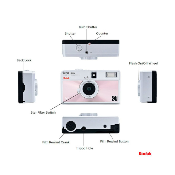Long-Exposure Photography Camera: The Kodak Ektar H35N 35mm Half Frame Film Camera comes with a built-in star filter to create four-beam flares on the images, as well as a bulb shutter and a tripod hole to support long-exposure photography. Perfect for capturing every moment..