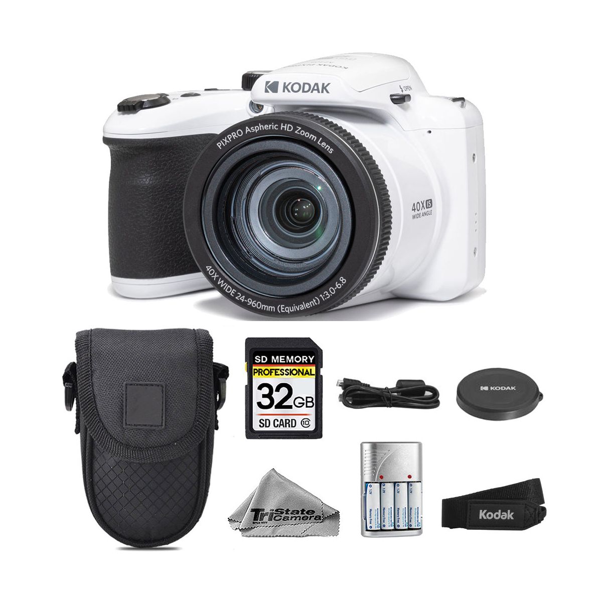 Kodak PIXPRO AZ405 Digital Camera (White)+Extra Batteries + Case + 32GB Kit