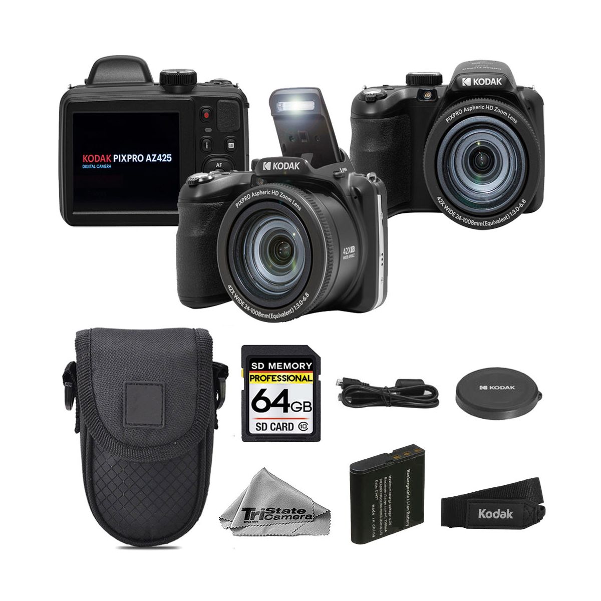 Kodak PIXPRO AZ425 Digital Camera (Black) w/ Case + 64GB Memory Card - Kit