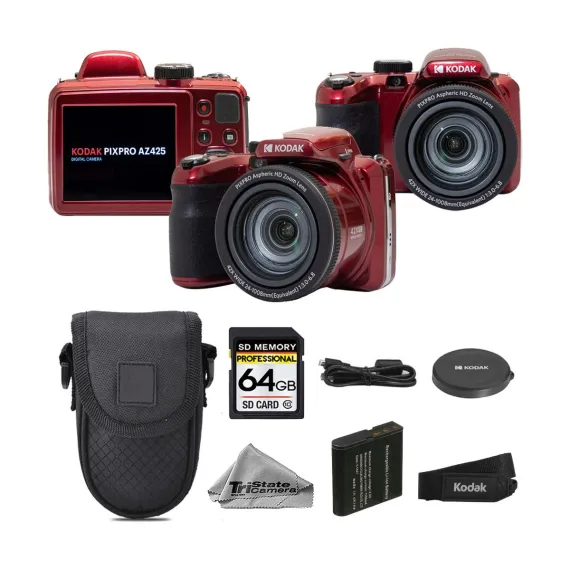 The TriStateCamera value bundle includes everything you need to get started right away, combining the powerful Kodak PIXPRO AZ425 camera with essential accessories for everyday shooting and travel.