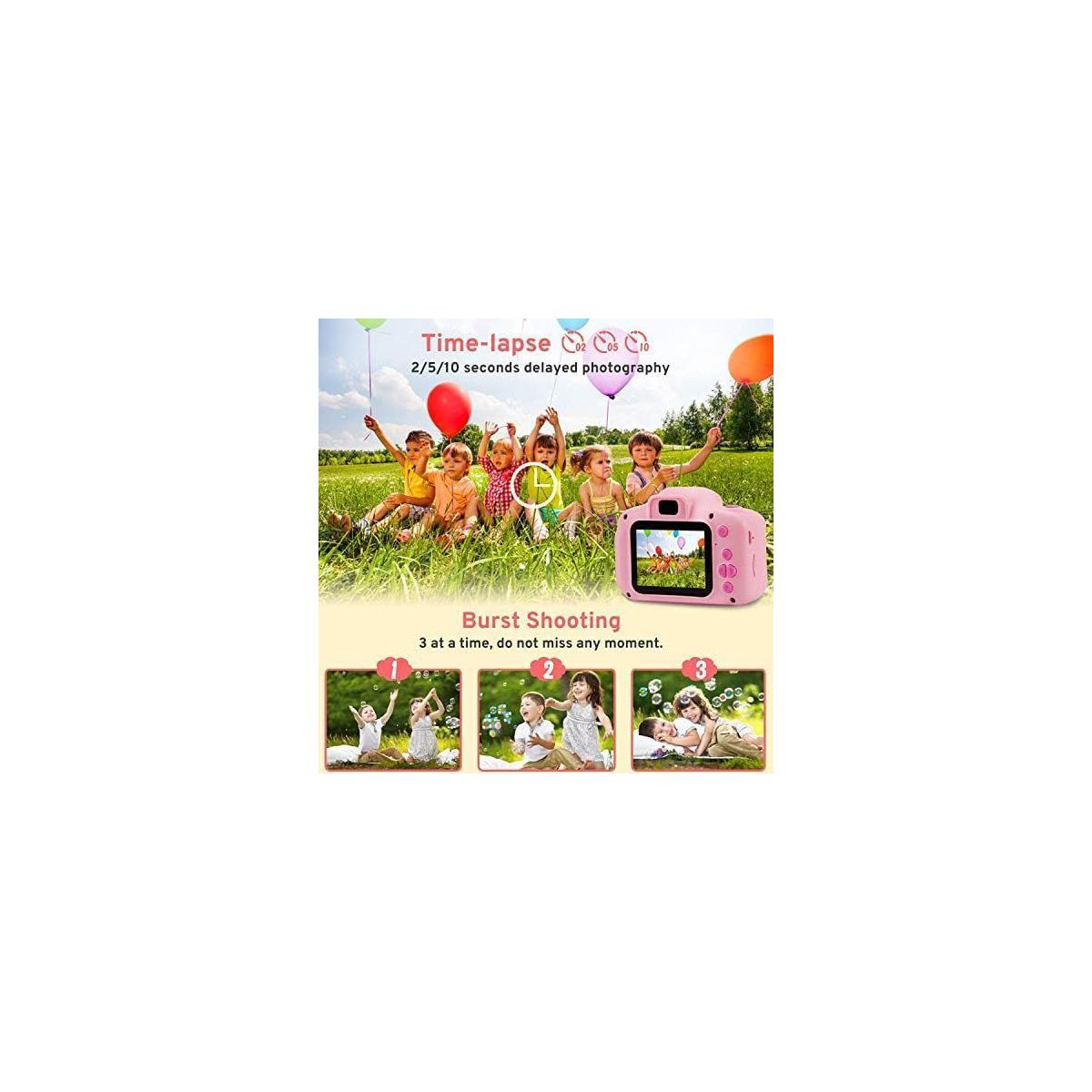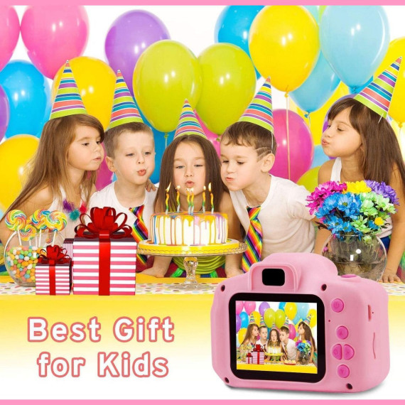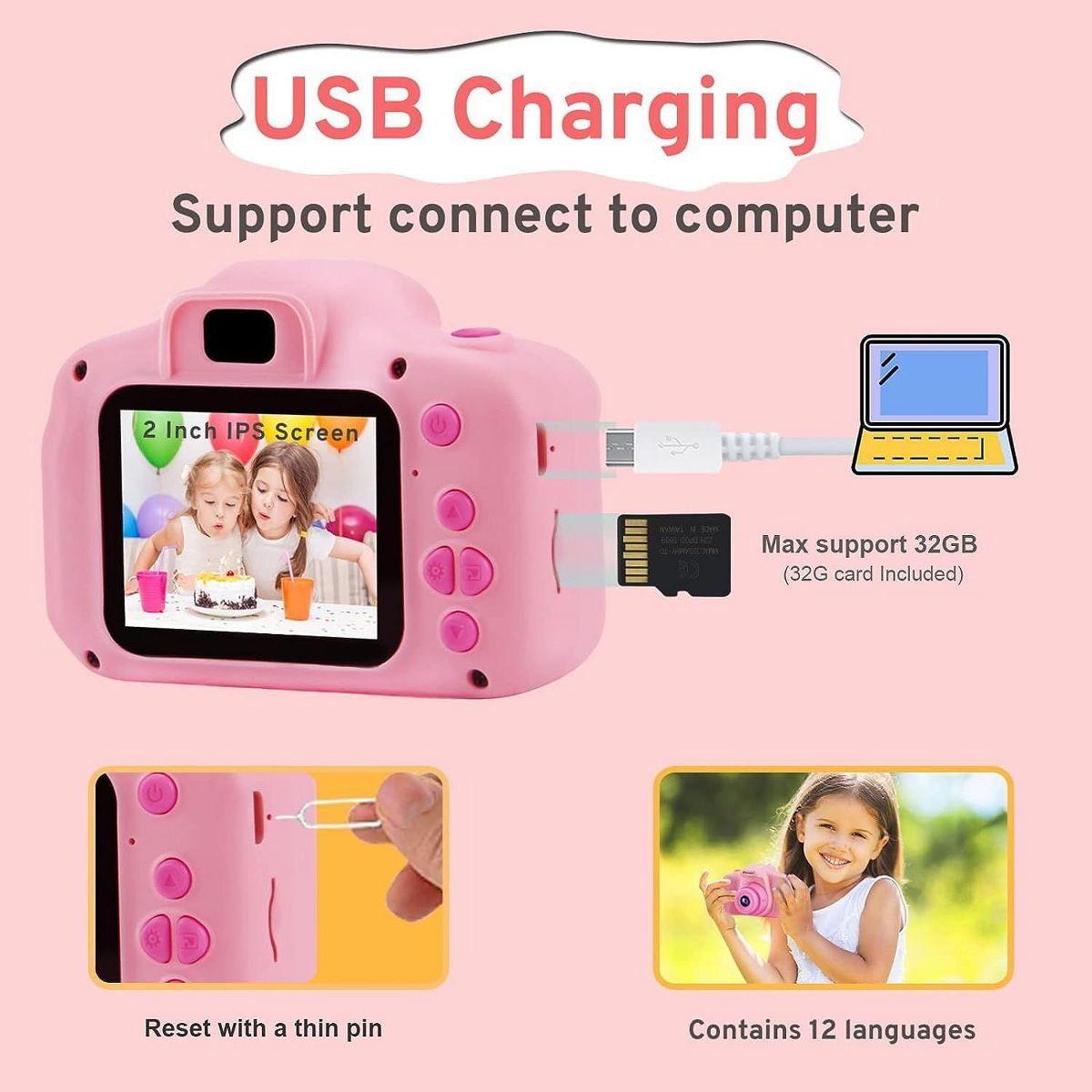 Link Kids Digital Camera 2" Color Display 1080P 3 Megapixel 32GB SD Card Selfie Mode Silicone Cover Boys/Girls Great Gift - Pink