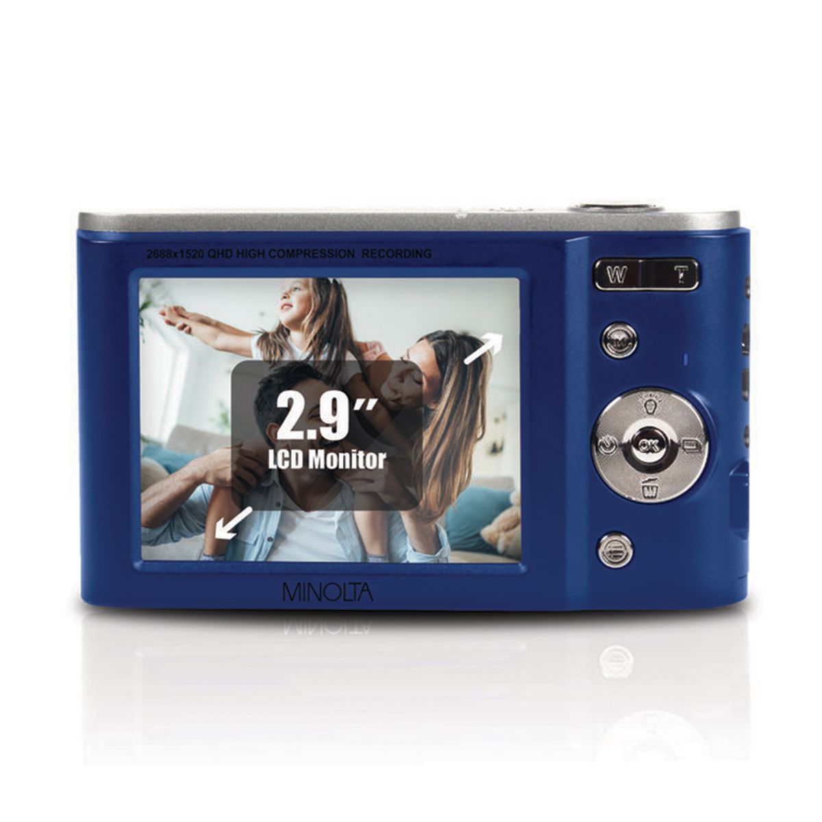 Preserve the moment with Minolta’s Silver MND20 Digital Camera and its high-resolution photos that are suitable for cropping or enlarging thanks to the 44 MP photo resolution. And its 2.7K Quad HD video gives your video greater vividness and clarity than standard-definition video. Featuring a compact size with anti-shake stabilization, you can easily compose shots and review photos with the 2.9-in. LCD monitor. Capture close-up details or shoot from a distance with the 16x digital zoom lens. Intelligent scene modes and features like smile capture and photo burst make shooting the ideal shot easy and fun.