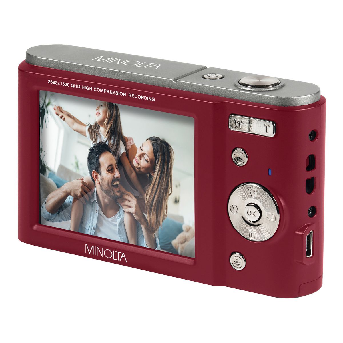 Preserve the moment with Minolta’s Silver MND20 Digital Camera and its high-resolution photos that are suitable for cropping or enlarging thanks to the 44 MP photo resolution. And its 2.7K Quad HD video gives your video greater vividness and clarity than standard-definition video. Featuring a compact size with anti-shake stabilization, you can easily compose shots and review photos with the 2.9-in. LCD monitor. Capture close-up details or shoot from a distance with the 16x digital zoom lens. Intelligent scene modes and features like smile capture and photo burst make shooting the ideal shot easy and fun.
