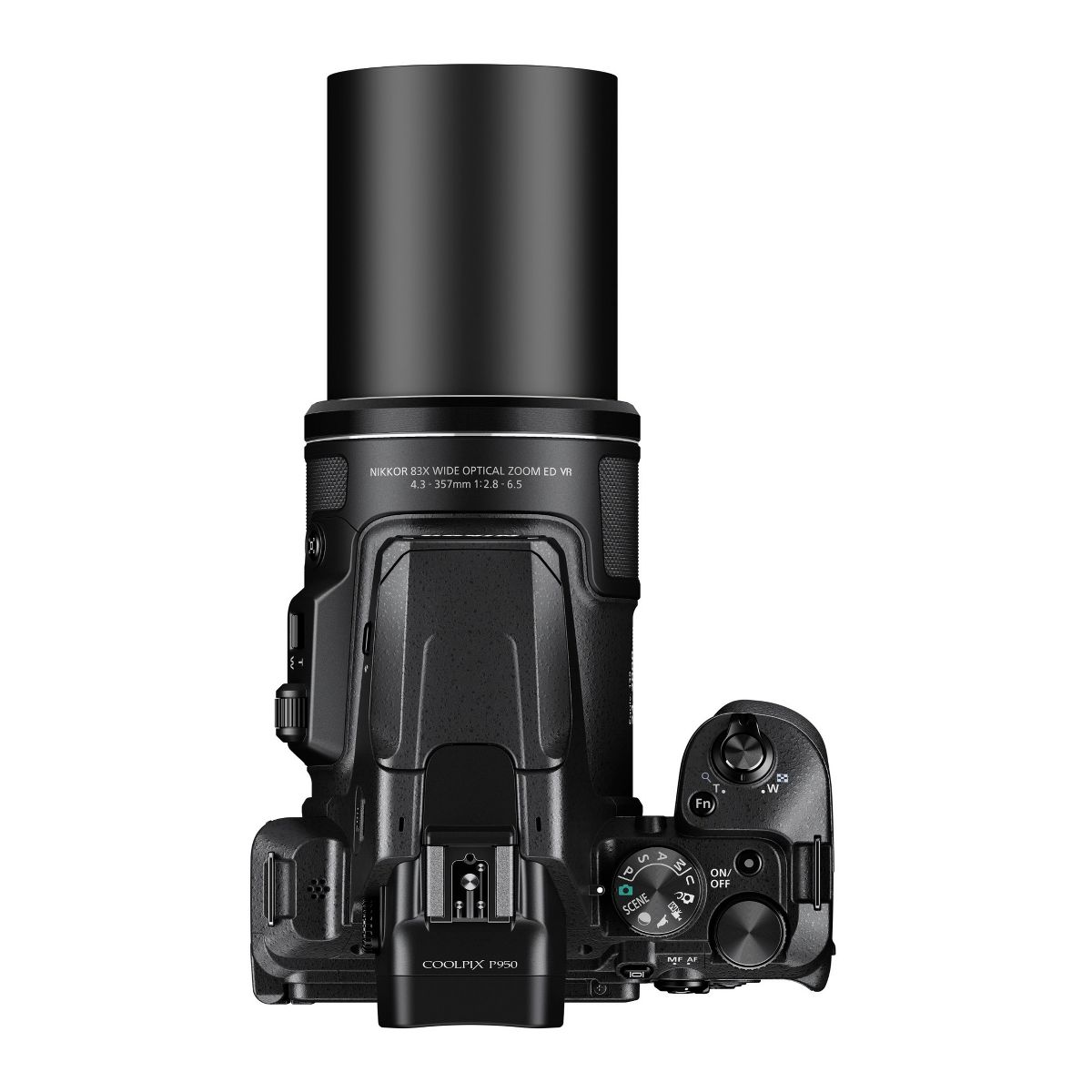 The 83x optical zoom of the Nikon COOLPIX P950 covers an incredible focal-length range, from wide-angle 24mm to super-telephoto 2,000mm and everything in between. With a zoom this powerful, you can capture distant subjects far beyond the reach of an ordinary camera—from birds and other animals in the wild, to distant landscapes, aircraft and even planets. Dynamic Fine Zoom, an enhanced digital zoom that effectively doubles the reach to a 4,000mm, allowing for even greater zoom potential. At the other end of the spectrum, macro photography can be captured as close as approximately 1 cm/0.4 inch. From extreme close-ups to extreme zoom, the COOLPIX P950 delivers sharp, clear and beautiful images, all in a compact, highly portable body.Super-Telephoto and Super PortableThe COOLPIX P950 puts the incredible power of a 2,000mm zoom lens into a compact body that weighs just 35.5 ounces. This combination of portability and super-telephoto performance is incredible, giving photographers the freedom to take their creativity to exciting new places.Dual Detect Optical VR for Reliable Super-Telephoto StabilizationImage blur can be a major issue, especially with distant subjects and super-telephoto shooting. Thanks to its Dual Detect Optical VR (Vibration Reduction), the COOLPIX P950 effectively reduces image blur caused by camera shake for sharp images of distant subjects even when shooting handheld. In Normal mode, images are stabilized with an equivalent of shooting at a shutter speed 5.5 stops faster, the maximum in the history of Nikon compact digital cameras.Superior Optical Performance for High Image QualityThe COOLPIX P950’s advanced optical system features a Super ED glass element used in Nikon’s heralded DSLR lenses, which provides higher image-forming capability and effectively reduces chromatic aberration, dynamically achieving superior image quality with super-telephoto shooting. The back-illuminated CMOS image sensor, with 16.0 effective megapixels and sensitivity up to 6400 ISO, enables the capture of clear, sharp images even in dark shooting situations.Faster AF Speed and Increased Buffer Capacity for Lag-Free ShootingWith the Nikon COOLPIX P950, you don’t have to wait for image data to write to the memory card before your next shot. Thanks to an increased buffer capacity, you can fire two consecutive bursts in Continuous H mode (up to 10 frames at approximately 7 fps). Combined with faster AF performance at the telephoto end, it’s easier than ever to pin down decisive moments and once-in-a-lifetime photo opportunities when shooting elusive wildlife or fast action.Cinematic 4K UHD MoviesThe COOLPIX P950 can record high-quality 4K UHD/30p movies across its entire zoom range, from 24mm all the way up to 2000mm. In Movie manual mode, you can completely control exposure and aperture settings for footage that looks just how you intended. AE can also be locked, even when ambient brightness changes significantly during movie recording. You can even choose the zoom speed during video recording by selecting one of three options with the side zoom control.RAW (NRW) for StillsWith RAW (NRW) file format support, full-resolution still images can be saved that contain all the setting information from the time of the shot, allowing post-capture image editing of white balance, exposure and COOLPIX Picture Controls without affecting the original.Time-Lapse Movies Made EasyDynamic time-lapse movies of landscapes and more can be automatically created from a series of still images captured in interval timer shooting. Just select one of five scene mode options and the most appropriate interval is automatically set..
