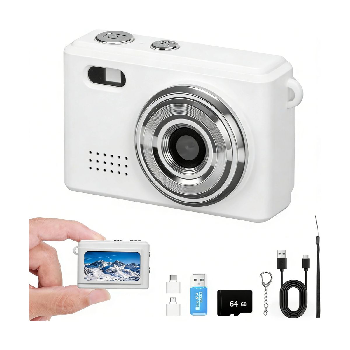 Pocket Mini Camera for Daily Moments – Keychain-Sized (Fits in Purse) + 64GB Card Included