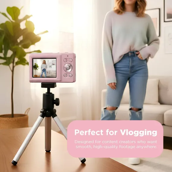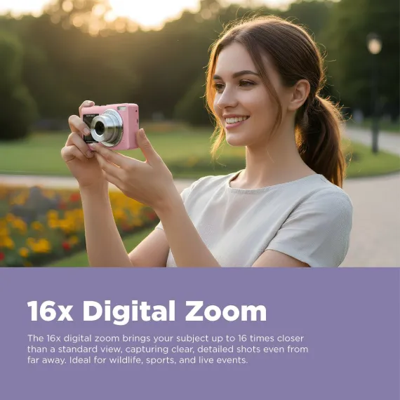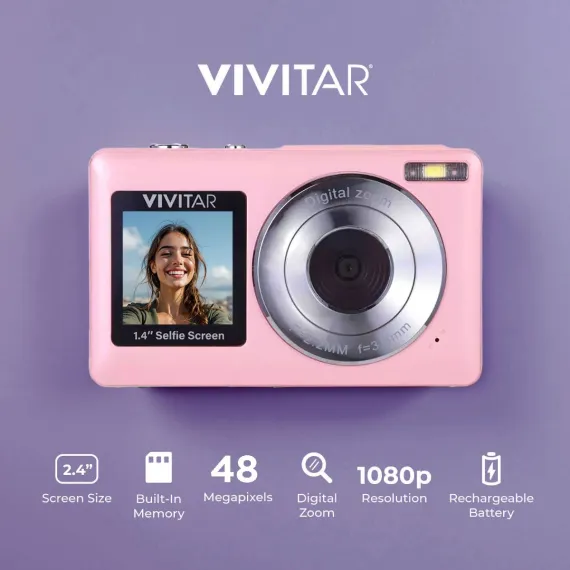 Say hello to the SnapShot Duo Digital Camera—a fun and compact camera with powerful features packed in a playful design. Equipped with a 1.4" selfie screen and 2.4" back preview screen, it’s perfect for snapping photos from every angle. Capture high-quality 48MP images and shoot 1080p videos with 16x zoom for extra detail. Whether you're vlogging or documenting memories with friends, the self-timer and continuous shooting features keep things smooth. With USB-C charging and a rechargeable battery, plus a micro SD slot supporting up to 64GB, you’re ready to capture and store it all. Built in Memory: Take up to 100 pictures.